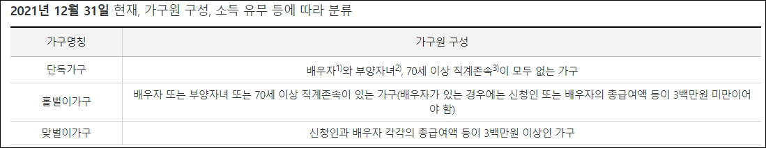 2021년도 6월 1일 현재 가구원이 소유하고 있는 재산합계액이 2억원 미만이어야 합니다.